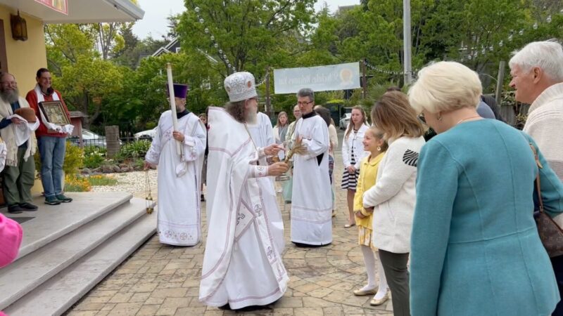 Sept. 7, 2025—His Grace VASILY visits St. Nicholas and is greeted by the children.